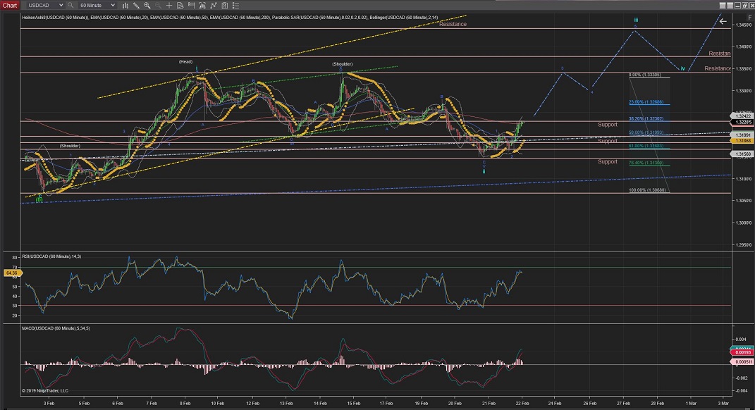 USDCAD seem to finally completed Wave ii at between %62 and %76 Fib retracement levels and start developing the first Waves of Wave iii upwards.