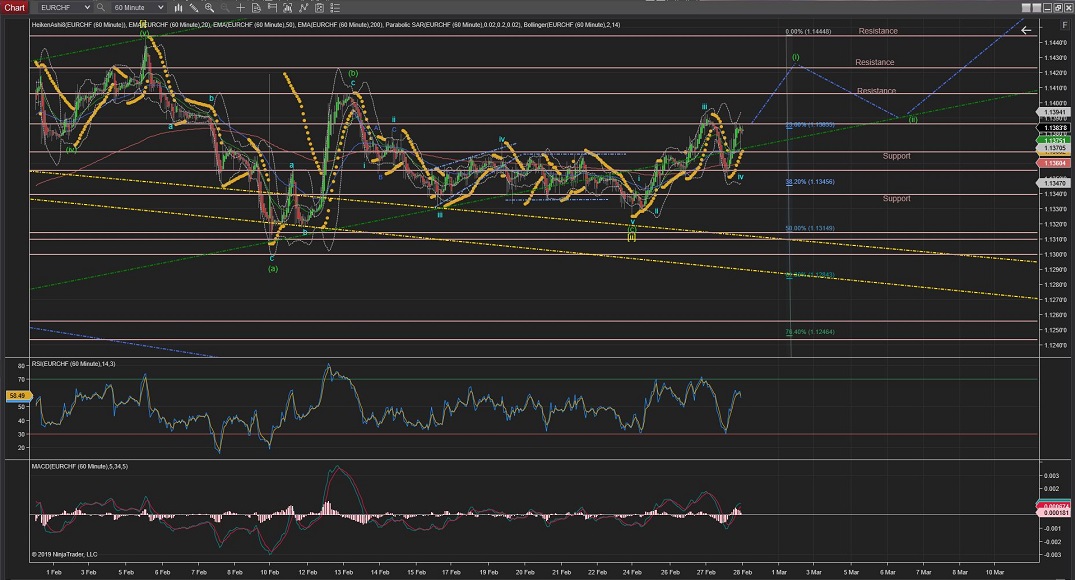 EURCHF has completed Wave iv and started Wave v on the way up.