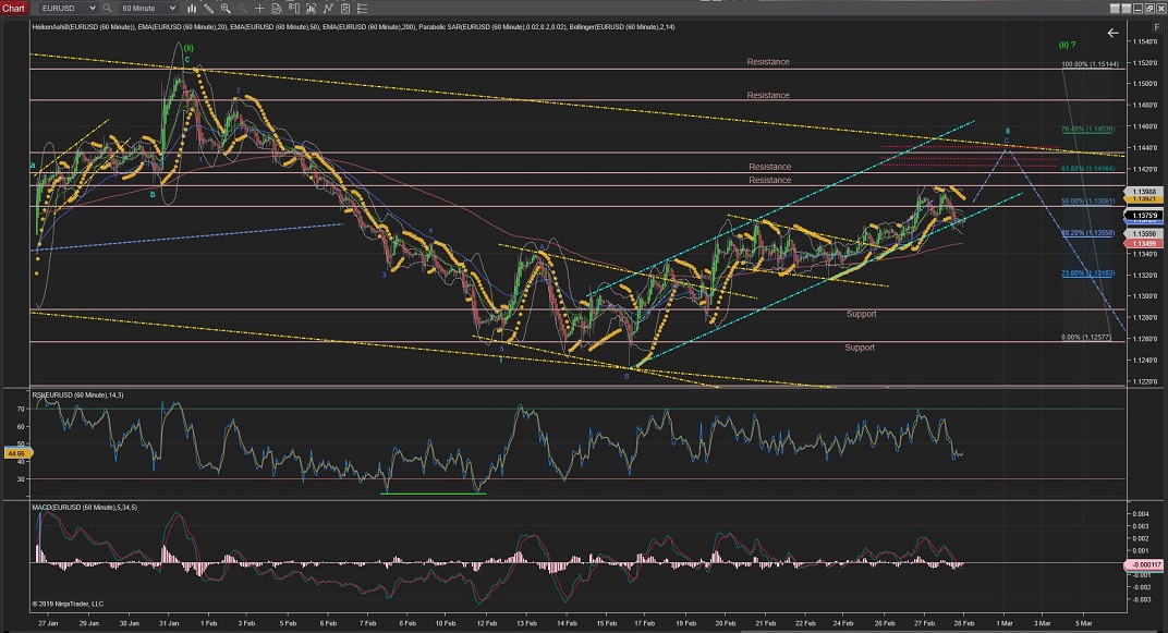 Now is time for Wave c and I would expect Wave c to complete Wave (ii) between the %50 and %62 Fib retracement area, although there is a possibility that it is completed around the %38 Fib area given the areas of support and the bottom of a small trend formed (cyan).