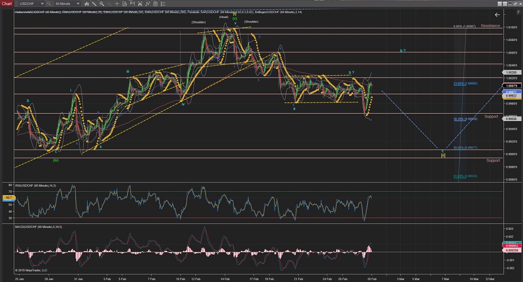 USDCHF is stack within Wave b of Wave [ii] but continuing the ZigZag correction (5,3,5) and should start Wave c to the downside soon.