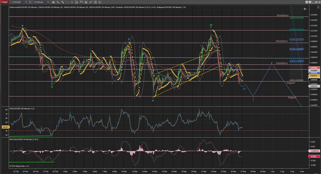 EURGBP is showing to have completed 3 Waves to the downside and now having Wave 4 correction could be completed.